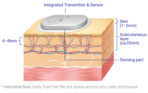 Glükoosisensor on väike, steriilne elektrood, mis asetatakse naha alla. Seal puutub ta kokku koevedelikuga, kus on glükoos ja hapnik. Sensoris toimub väike biokeemiline reaktsioon: glükoos reageerib ensüümiga, mille tulemusel tekib mõõdetav elektriline signaal.